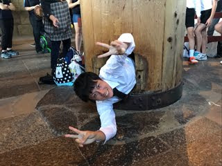 大仏殿の中にある柱に,穴の空いているところがあります。その穴の大きさは,丁度,大仏様の鼻の穴の大きさと同じだそうです。その柱の穴を通り抜けると願いが叶うとか・・・!おおみやっ子全員が挑戦しました!